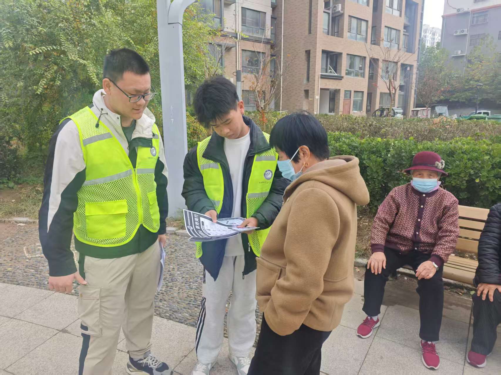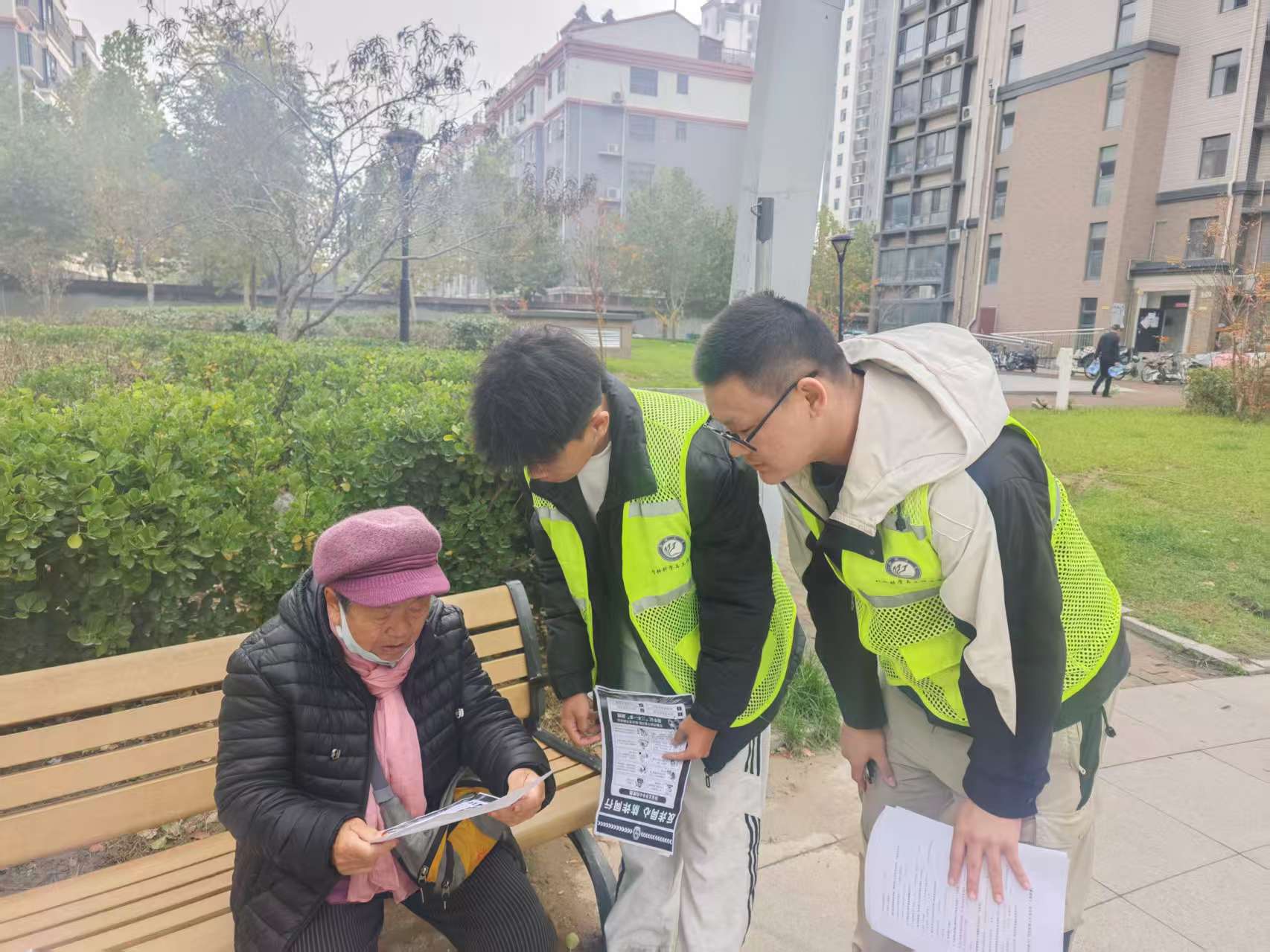 为切实提高社区居民防诈骗意识,保护群众财产安全,2025年11 月 8 日上午,70net永乐高 2023 级 3 班团支部志愿者,走进柳园街道文慧社区金柱大学城 C 区,开展 “反诈有我,安全同行” 志愿服务活动,为居民送上实用的反诈 “防护指南”。