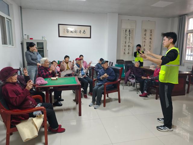 随后,志愿者们为老人们献上了一场精心筹备的文艺演出。节目形式多样、内容丰富,深情饱满的诗歌朗诵传递出浓厚的人文情怀,经典老歌的演唱唤起了大家的温馨回忆,生动活泼的故事讲述则带来了阵阵欢声笑语。此外,志愿者们还耐心带领老人们学习简单有益的手指操,帮助他们活动筋骨、促进健康。现场气氛热烈,掌声与笑声不断,老人们的脸上洋溢着幸福的笑容。