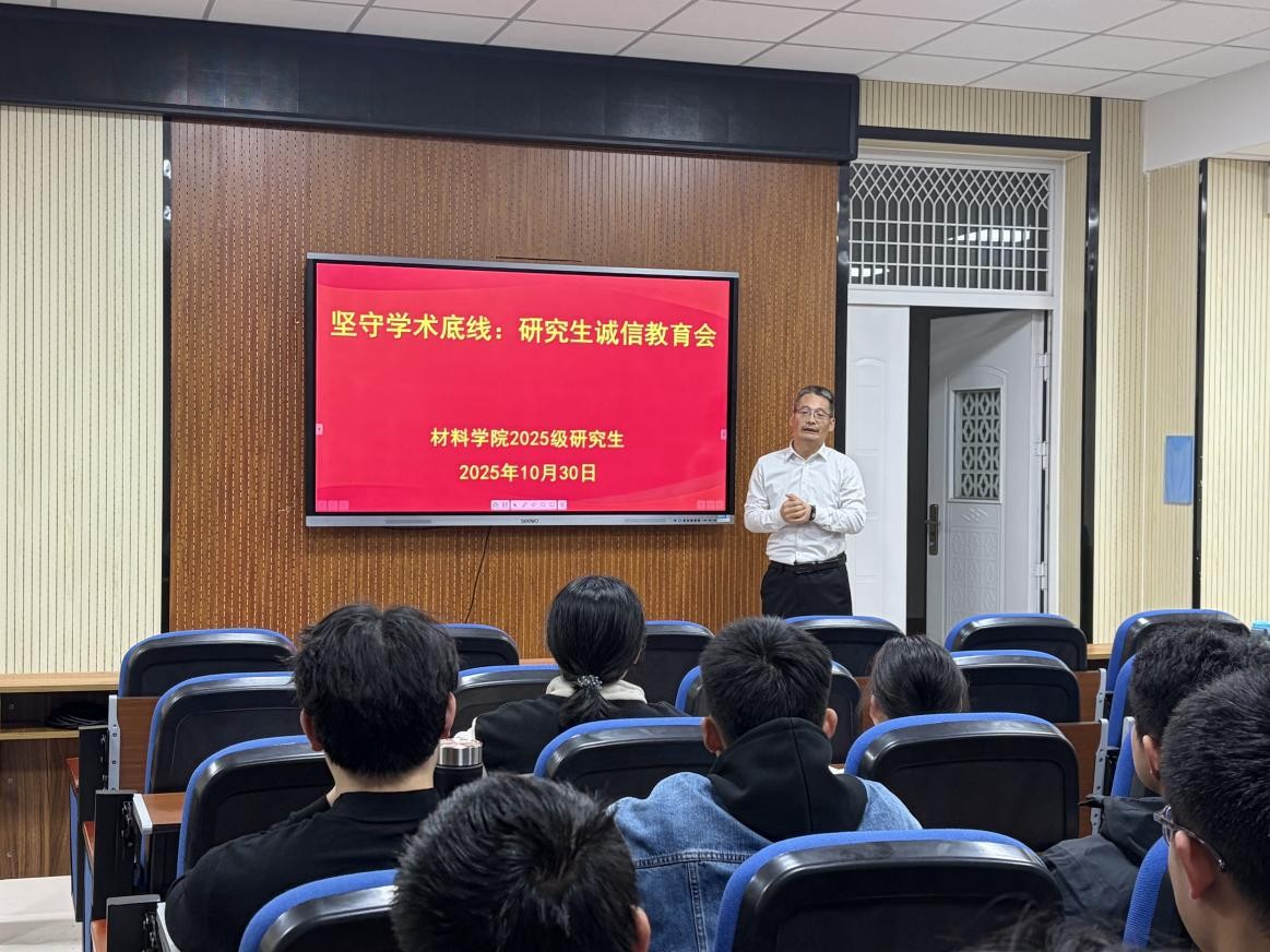 为进一步强化研究生的学术规范意识,营造风清气正的学术生态,2025年10月30日,70net永乐高在五号实验楼202组织开展坚守学术底线:研究生诚信教育会活动,此次会议邀请倪俊杰老师担任主讲嘉宾,学院全体2025级研究生参会。